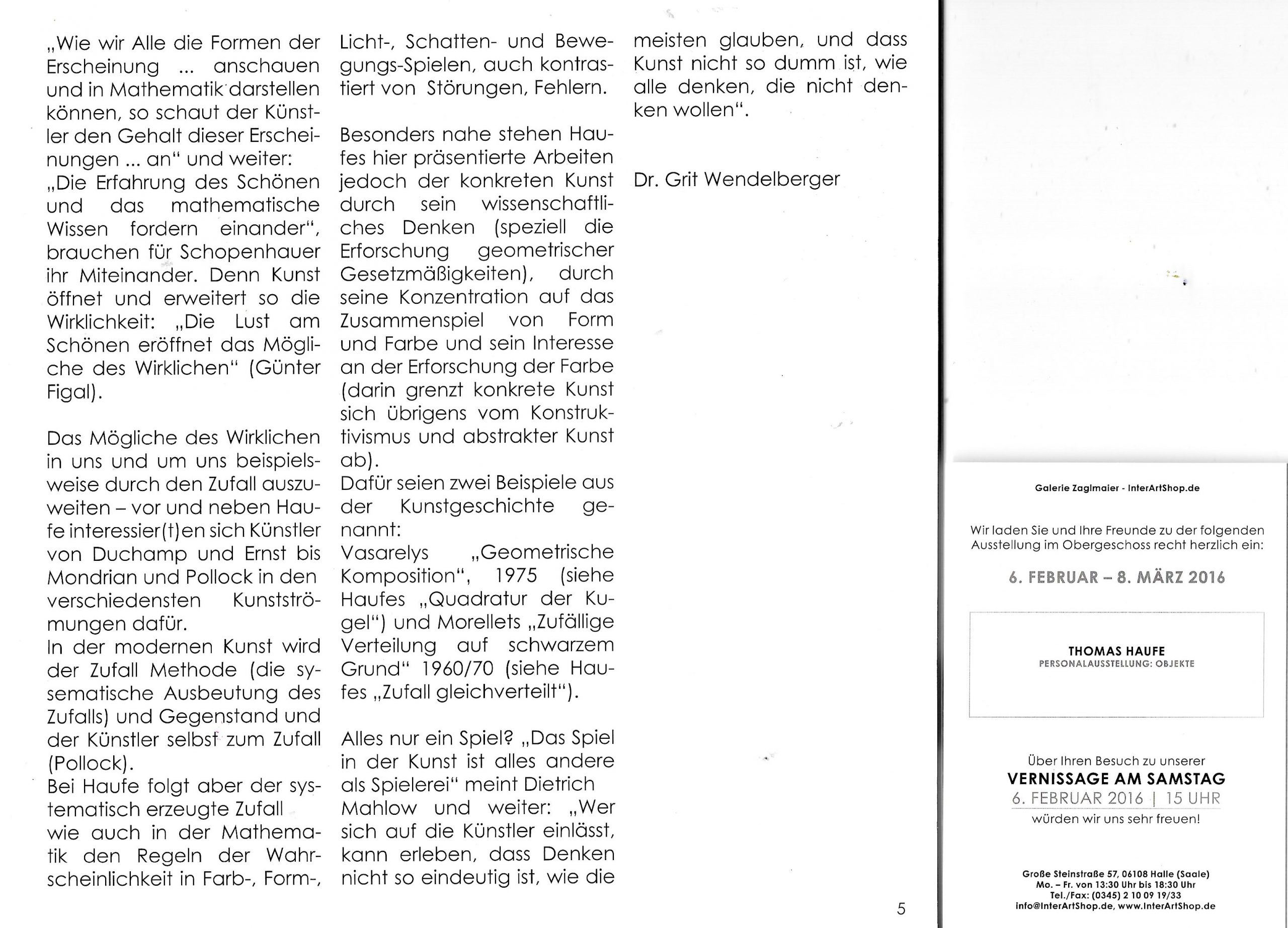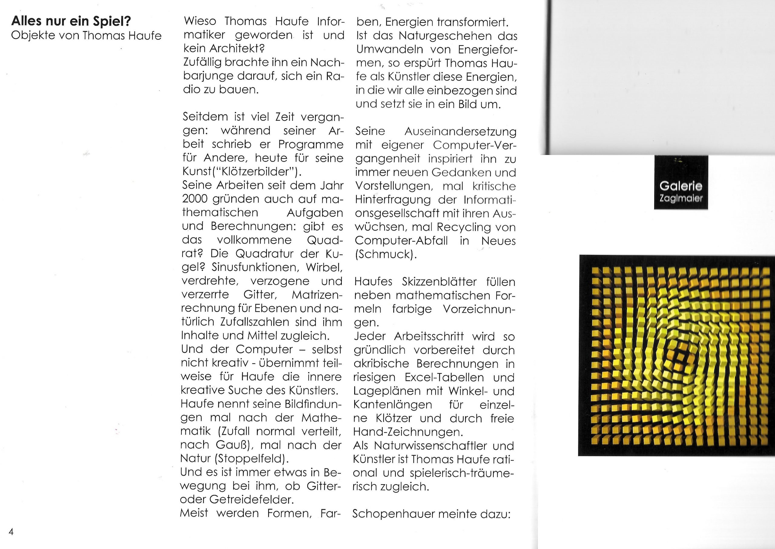 Alles nur ein Spiel? Katalogtext für Thomas Haufe von Grit Wendelberger, Einzelausstellung Galerie Zaglmaier 2016