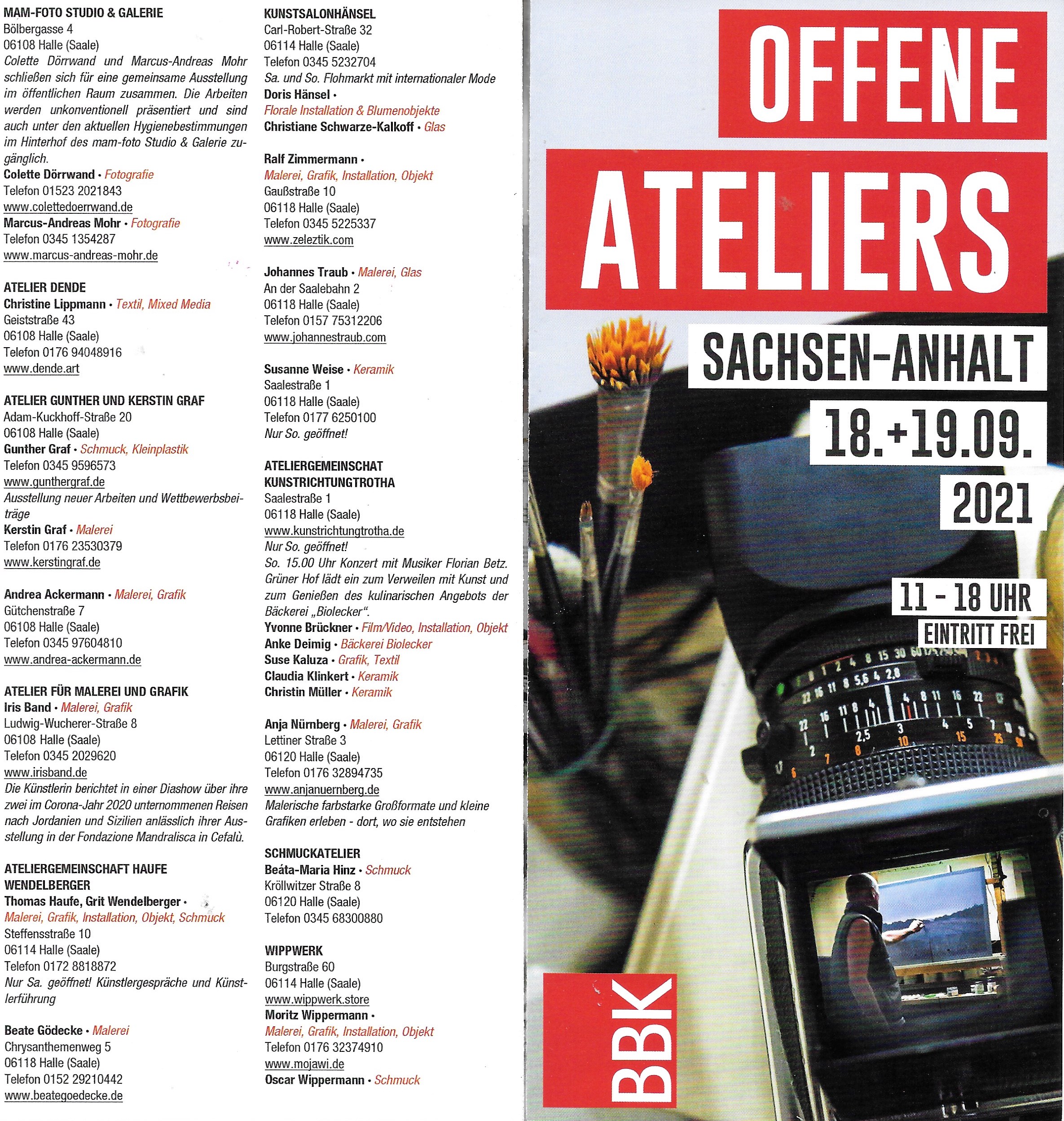 Offene Ateliers BBK Sachsen-Anhalt 2021, Teilnahme Ateliergemeinschaft Haufe-Wendelberger (Malerei, Grafik, Installation, Objekt. Schmuck)