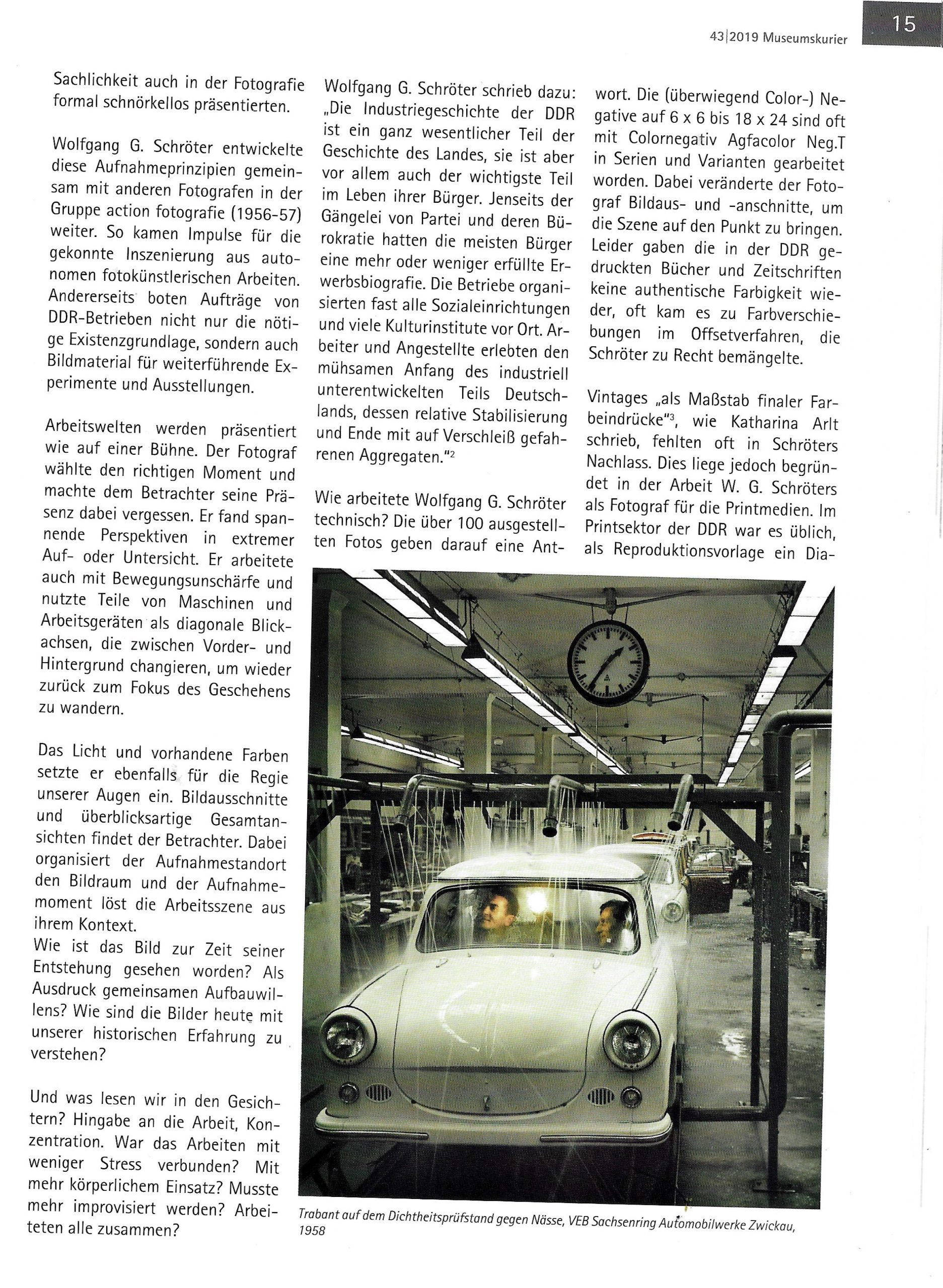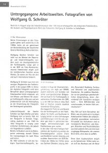 Untergegangene Arbeitswelten, Einzel-Ausstellung von Fotografien aus dem Nachlaß von Prof. W.G. Schröter im Industriemuseum Chemnitz, Text und Eröffnungsrede von Grit Wendelberger