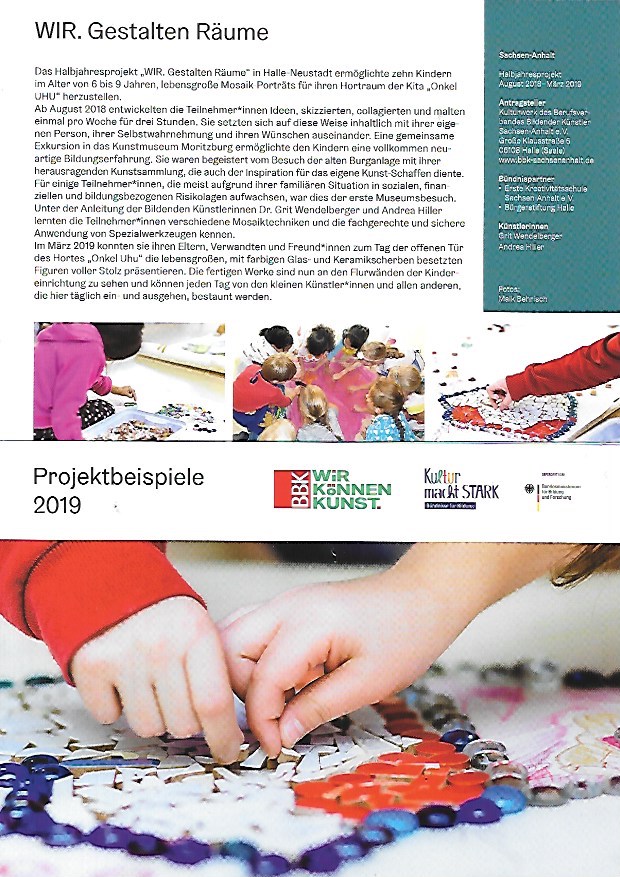 „Wir können Kunst“, BBK-Bund-Förderprojekt kulturelle Bildung, „Wir.Gestalten.Räume“- ein Projekt mit dem Hort „Onkel UHU“ der Kreativitätsschule Halle-Neustadt 2018, künstlerische Leitung Grit Wendelberger